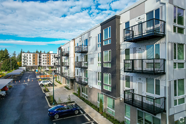 These two four-story buildings serve University Place's growing downtown core along Bridgeport Way. On a narrow lot slotted between exising light commercial and single family homes, the buildings balance the existing neighborhood while remaining responsive to the growth the city is experiencing. With 104 units, spacious tenant amenities and on-site parking, the project makes use of every available square foot of this property.