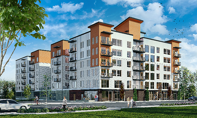 Nestled against the White River in Sumner, this five-story mixed-use building will be the tallest building in the city once completed. 128 units and 1,000 SF of commercial retail are served by two levels of sub-grade parking. The Fryar is the first building of this scale in Sumner, and a jumping off point for the city's anticipated growth.